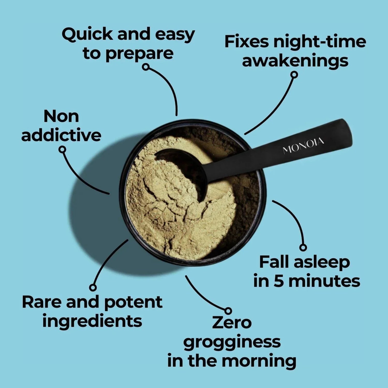 Monoia Sleep Formula helps you sleep deeply without that groggy morning hangover — just pure energy to start your day.