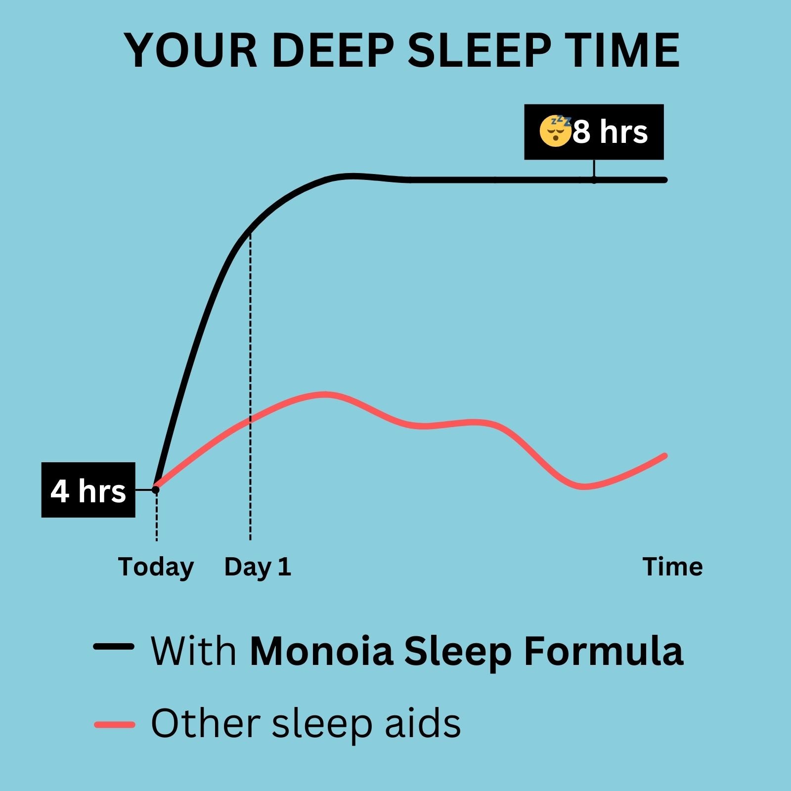 No more tired mornings or dragging yourself out of bed — Monoia Sleep Formula ensures you wake up ready to embrace your day.